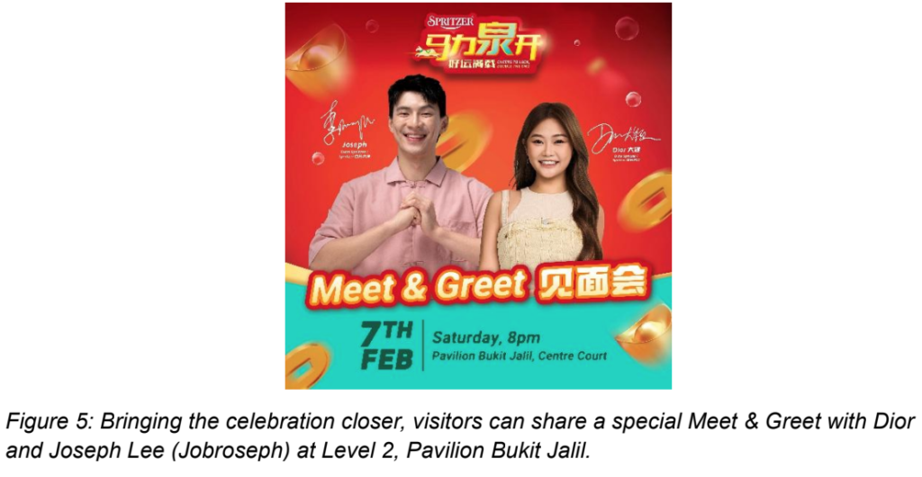 Spritzer brings these moments to life with its interactive Chinese New Year roadshow happening from 4 to 8 February 2026 at Level 2, Pavilion Bukit Jalil (in front of Tsutaya Books Malaysia). Visitors can enjoy a Meet & Greet with Dior and Joseph Lee (Jobroseph), interactive game booths, exclusive promotions, and product sampling, creating a lively space for families and friends to celebrate together. Adding a refreshing festive touch to the season, Spritzer also introduces its Chinese New Year limited-edition 250ml Natural Mineral Water bottles, perfect for sharing around the reunion table. These limited- edition bottles are available in three unique label designs and naturally rich in silica for healthy skin, hair, and nails to ensure everyone stays hydrated during the holiday season. For those who love a sparkling twist, Spritzer Sparkling offers no sweeteners and no calories, available in original, lemon, and the newly launched sea salt & citron flavour.