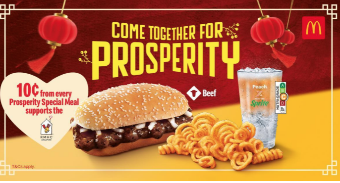 This year, when you enjoy a Prosperity Special Meal, we are doing a good cause collectively, as 10 cents from each meal goes towards RMHC Singapore. Each meal features the Prosperity Burger® served with crispy Twister Fries™ and a refreshing Peach McFizz® . It’s sure to taste good, and feel good!